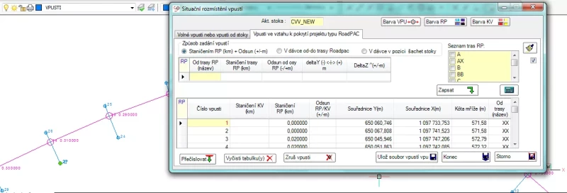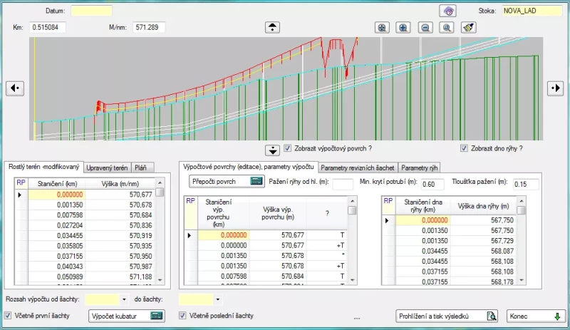 • Návrh polohy a připojení vpustí, kubatur zemních prací, vpustí a jejich přípojek.
